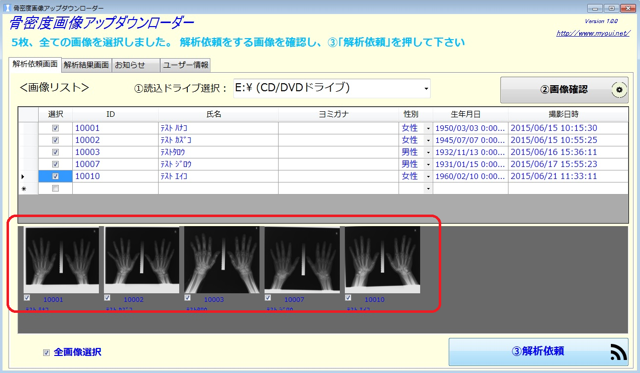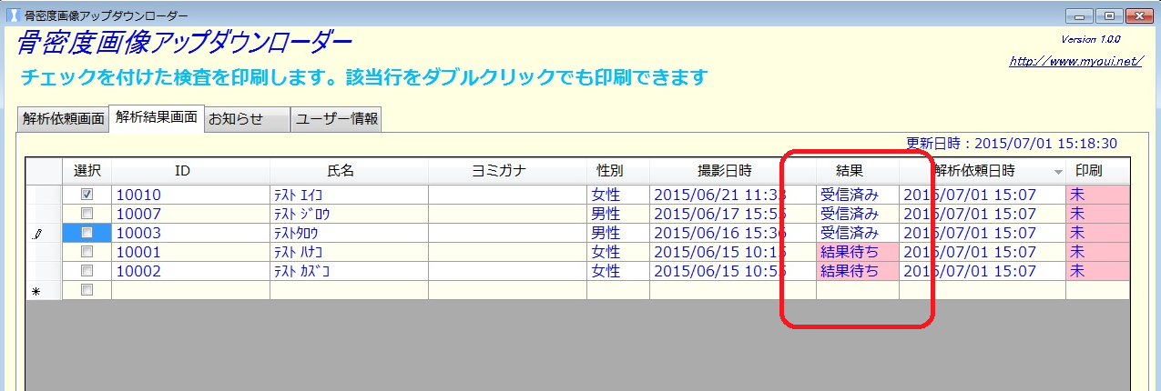 ・無料の専用のソフト「骨密度画像アップダウンローダー」を使う事で、画像の送信、検査結果の受取りがとてもスムーズに行えます。
