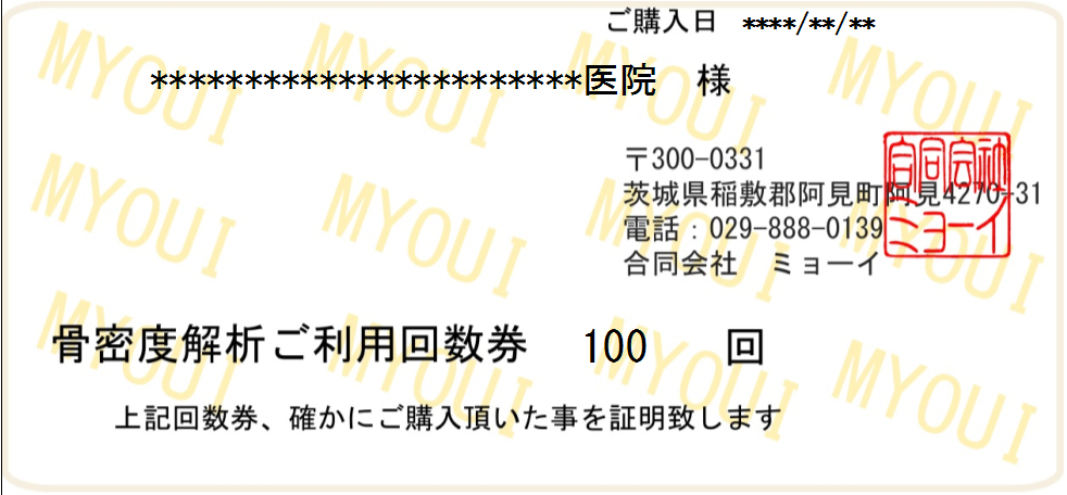| 骨密度解析券(DIP法・CXD法)100回分 38,500円(税込) | 解析単価350円 | |