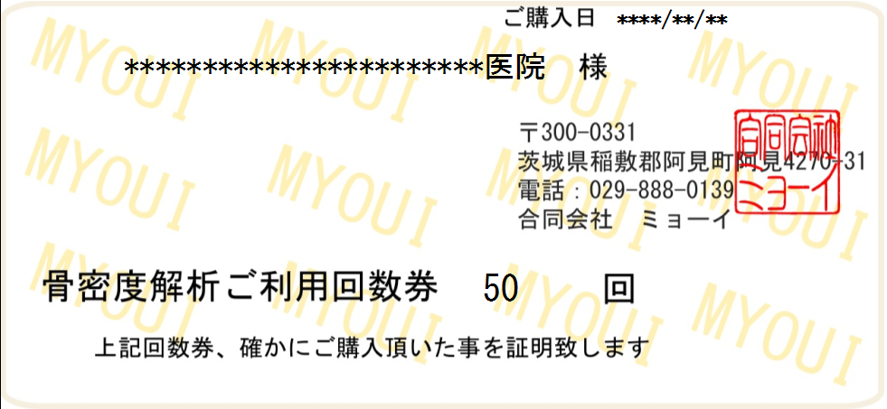 | 骨密度解析券(DIP法・CXD法)50回分 22,000円(税込) | 解析単価400円 | |